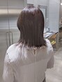 透けるような透明感のミルクティーグレージュ。こちらはカラー剤でダブルカラーをしています。ブリーチよりも傷まず、ワンカラーよりも圧倒的に透明感がでるので、現状の髪色が暗めの方、いつもオレンジになってしまう方はこちらがおススメです♪