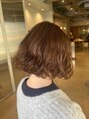 ラフな動きが可愛いショートボブ。細かめウェーブでボリュームを出しつつ、毛先は軽やかに。抜け感のあるブラウンで、ナチュラルだけどこなれた印象に。