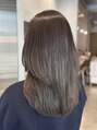 ツヤと透明感が出るイルミナアッシュカラーでナチュラルだけど雰囲気のあるヘアカラーに。ただ切りっぱなしではなく、指通り良く、重軽な質感を作っています。顔まわりの後れ毛、シースルーバングもポイント!