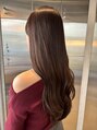 日本人特有の髪の赤みをしっかり消し、透明感あふれるオリーブロンググレージュ。光に当たると透けるような質感で、肌をワントーン明るく見せます。おしゃれ感度の高い方に人気のトレンドカラーです。