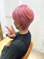 ブリーチリタッチでつなぎながらロゼピンクをオン。カットはややえりあしを残したサイトグラのスタイル。ストレートアイロンとオイル、スプレーでキープ。