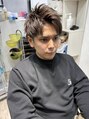 ツーブロックのショートで頭の丸みに沿ってカットし毛量が多い部分はセニングを。スタイリングはツヤ系ハードワックスでハチ周り、こめかみはボリュームを抑えて。カラーはワンブリーチベースにモノトーンをベースにしたカラーをオン。
