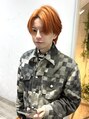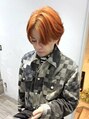 カットは目の横に毛束が落ちる絶妙な位置に調整し、ウェイト位置(バックの膨らみ)を高めの位置に設定し軽く。えりあしは長めに残してメリハリを最大限に効かせた最旬ウルフです!1ブリーチで6オレンジをオン。