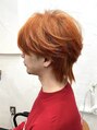 カットは目の横に毛束が落ちる絶妙な位置に調整し、ウェイト位置(バックの膨らみ)を高めの位置に設定し軽く。えりあしは長めに残してメリハリを最大限に効かせた最旬ウルフです!1ブリーチで6オレンジをオン。