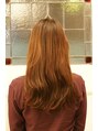 【気に入って頂いたスタイルは、ブックマークをしてご提示ください】ロングヘアならではのパーマスタイル。少しだけ強めのパーマでお家でも再現しやすいスタイルに。カッパー系でツヤ感を出し毛先にバームで可愛く仕上げます。