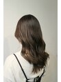 透明のあるアッシュカラー。赤みやオレンジ味がなくなるこの色が大人気♪毛先はまとまり重視の段のないスタイル。巻いても可愛い◎