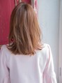 毛先の内巻き外巻きがミックスされたワンカールがふわっと女性らしさを感じさせる愛されセミディスタイル。目の上ギリギリで流した長めのバングは細い束感を作っているのでところどころおでこが透けるのがさらに愛されポイント!【行徳】