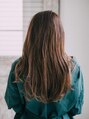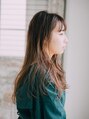 重たさを残したAラインシルエットのロングスタイル、落ち着いた雰囲気はトーンが暗いカラーリングで演出。シースルーバングで抜け感を出しましょう。Aラインのシルエットにゆるっとカールで女性らしいアンニュイな雰囲気漂う綺麗めロングスタイルです【行徳】