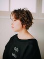 ショートボブの顎ラインレングスがベースになっています。襟足は刈り上げることで後ろがすっきりとまとまった印象に。バングをセンターパートにすることで少し大人っぽい要素も加えつつガーリー感を出しています。【行徳】