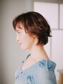 フェミニンなランダムパーマが入り、すっきりとしたショートスタイルです。いろいろな方向に動くようにパーマがかかっているので立体感が出しやすくなっています。ウェイトがバックの低い位置にくることで頭の形をよく見せています。【行徳】