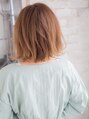 肩にあたる長さで切りそろえた切りっぱなしのミディアムボブ。切りっぱなしボブは毛量が多い方だと全体的に思ためな印象になってしまいがちですが、シースルーバングにすることで軽い印象がプラスされてバランス良く仕上がります。【行徳】