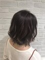 以前にブリーチされている髪にアッシュ×パープルで艶感と柔らかさを出したラベンダーアッシュに大変身☆ ばっさり肩まで切った髪に表面には少しレイヤー(段)を入れて軽さと動き出したスタイルに◎