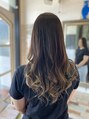 グラデーションカラーにグレージュが入ったデザインカラーになります。ロングスタイルはミックス巻きスタイルになります。
