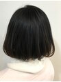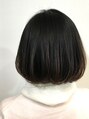 少し前下がりのワンカールボブ。ヘアカラーあり・黒髪・グラデーションカラーなどどんなカラーでも可能。前髪アリならクールな印象に、前髪アリならかわいめに。※黒髪で前髪アリの場合はオカッパに見えるので要相談。