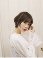 バレイヤージュ ノーブルショート エフォートレス 大人かわいい センターパート グラデーションカラー 小顔 マッシュ 耳かけ 無造作 くせ毛風 クラシカル モード ルーズ 似合わせカット ベージュカラー 簡単スタイリング 重めスタイルな方必見です。