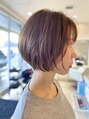 カットはキレイなシルエットの丸み長めショートです。[ショート/丸みショート/ひし形ショート/ハンサムショート/ショートボブ/ミルクティー/ベージュ/オイルカラー/オーガニックカラー/バイカルテ/トリートメント/ハイトーン/ブリーチなし]
