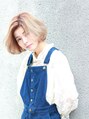 ふんわりゆるくカールのついたボブです顎下ラインのボブはまとまりがよくおすすめ表面にゆるいカールをつけると夏っぽくおすすめです!