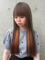 ブリーチカラー ダブルカラー グレージュ ミルクティーグレージュ インナーカラー シールエクステ インナーエクステ ハイトーン デザインカラー オレンジカラー ロングヘア 前髪カット