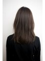 やや前下がりにカットした切りっぱなしスタイルあえてカットラインを残す事で毛先に厚みがでてオシャレ度UPカラーは全体にハイライトを入れて、グレージュカラーに!