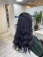 元々カラーする前の状態が明るめの方だと暗めのブルーが綺麗に色が入ります。自然光などに当たった時に色味が出るので落ち着いたカラーが好きな方におすすめです。[デザインカラー/レイヤーカッ/ウェットヘア/ウェットヘア/津田沼駅/髪質改善]