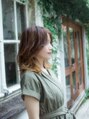 鎖骨ぐらいのボブベースにシナモンベージュカラーのグラデーションで柔らかい雰囲気に!エアリーカールが可愛い小顔ゆるふわミディ。サイドパートでかきあげて耳かけなら大人クールなセミディに。アレンジもしやすい優秀セミディ!伸ばしかけの方にも◎