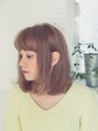 丸いシルエットで柔らかさを出したミディアムスタイル。 バングが重ためにしてある分表面に少しレイヤーを入れて軽さと重たすぎないように透け感をプラスしています♪カラーも透け感のあるベージュで柔らかい印象に♪