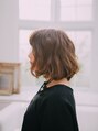 肩上の前下がりボブにしっかりカールをつけたパンキッシュボブ。まゆ下の少しラウンドさせた前がみがかわいい印象に☆ほぼノンレイヤーなのでパーマが広がりすぎないように毛量と質感を調整しています。ぺたんとなりやすい方にもおすすめです☆