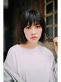 鎖骨レングスの内巻きロブスタイルです。カラーはダークトーンのアッシュ系、前髪は巻くと眉が見え隠れするレングスです。伸ばしている方にもおすすめです。カラーのアッシュ系とツヤ感がさらに個性的にキレイにみせてくれます!