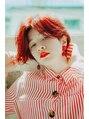 光に透けるチェリーレッドカラーが印象的なショートスタイル。室内では落ち着いたレッドブラウン、日光に当たると透けるビビットな発色!2WAYオシャレカラーです☆周りと差がつくとっておきのカラーリング、オススメです!