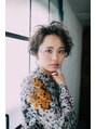 ショートボブにカールを散らしたスタイルです。ウエット系のジェルスタイリング剤で細く毛束を作り立体感のでるようにしています。襟足はすっきりと丸いシルエットより四角いシルエットにしてカジュアルよりにしています。