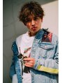 少し長さを残したショートスタイル。フロントはマッシュなラインでカットして少し丸めなシルエットをつくっています。パーマはランダムなはね感を再現するのに、ねじりスパイラルで縦の動きを作って広がりすぎないようにしています。