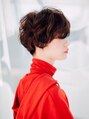 ネープ短く、耳たぶが隠れるくらいの短めの前下がりなグラデーションショート!バングは長めのマッシュラインでクールに!トップがふんわりするようにやわらかなカールをプラス。カラーは少し透け感が出るくらいの寒色系ブラウンに。