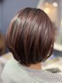 全体を重ためのショートボブにし収まりよしプラス、ブラウンベースのツヤ感バッチリの大人向けスタイル。