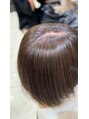 長年続けてきた真っ黒な白髪染めを優しく剥がして、自然なベージュブラウンへ。一気に明るくするのではなく、髪に負担をかけずに徐々に色を調整する白髪染め剥がしで、柔らかい印象と透明感を実現。