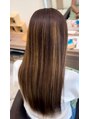 広がりやすくうねりが強いエイジング毛に対し、ダメージを抑えながら縮毛矯正とブリーチハイライトを同時施術。しっかりクセを伸ばしながらも、立体感と自然な動きを演出。柔らかくまとまりのある艶髪に仕上げました◎