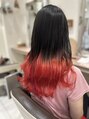 毛先にかけて鮮やかに発色する赤のグラデーションカラー。根元はダークトーンで落ち着かせることで派手すぎず、色落ち後も綺麗に楽しめます。ブリーチは毛先のみなのでダメージも抑えられます。
