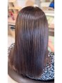 酸熱トリートメントで、うねりやパサつきが気になる髪を内部から補修。縮毛矯正のようにまっすぐすぎず、自然なまとまりと艶感を実現。手触りも柔らかく、毎日のスタイリングが楽に