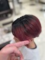 赤味をしっかり発色させたレッドカラー。光に透けると柔らかく見える透明感レッドです。ブリーチ履歴がある方でもムラなく綺麗に染まるよう薬剤を調整しています。色落ち後も可愛い色味です。