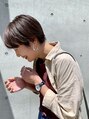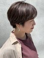 大人っぽいマッシュショートスタイル。カラーは透明感のあるベージュ・カーキ系を使用。ハイライトも入っていて立体感がでています。センターパートで分けた前髪で大人っぽいハンサムな印象になっています。
