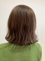 秋冬はダークなカラーにしがちですが、色味を少しまろやかにすることで季節にも馴染むカラーに。実はピンクを配合し、くすんだベージュをメインにカラーしています。ぱつっと切りっぱなしすることで今っぽい仕上がりに。