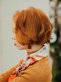 コクのあるオータムオレンジのハイトーンカラーが印象的!丸みのある重めなボブが、秋冬っぽいです!ゆるめ、大きめにランダムに仕上がっています。【岡山】【倉敷】【白楽町】