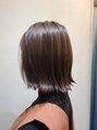 やや前上がりのボブベースの顔周りにレイヤーを入れてあごラインを軽めに見せています。カラーは表面に少しハイライトを入れてアッシュベージュを全体に入れて、ツヤ感を出しています。【岡山】【倉敷】【白楽町】