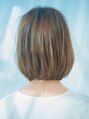 王道なボブスタイル。バングをセンターで分けることで子供っぽくなりすぎないように。カラーリングは少しでも動きや立体感の見えるように、ハイライトとローライトを入れました。自然な内巻きになる簡単スタイリングです。