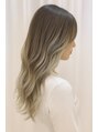 赤みを抑えたくすみグレージュをベースに、柔らかく自然に繋がるバレイヤージュデザイン。根元は地毛風の暗髪を残しつつ、毛先に向かって明るくなるグラデーションが透明感と軽さを演出。