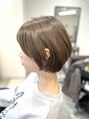 顔まわりにレイヤーを入れた、韓国風ショートスタイル。後頭部のボリューム、ネープラインのタイトなライン。今可愛いデザインを詰め合わせたショートカット。