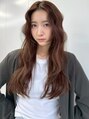 顔周りレイヤー ピンクブラウン 韓国 ウェーブヘア