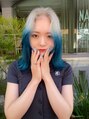 White ice Blue .遊び心のあるオリジナルカラー。3ブリーチからホワイトベージュとブルーのMIX design。オリジナルの配合でもっとおしゃれに。より可愛く。