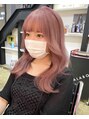 初めは黒染め履歴がありましたが、今回で2回目のブリーチをしてピンクベージュにしました。ピンクカラーも調合の仕方で色味が変わるので、ベースを見極めて希望の色味に近づけていきます。色持ちさせるためにピンクシャンプーをお勧めしています。