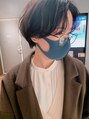 nuance short hair。目にかかるくらいの長めの前髪と、丸みのあるフォルムで。.表面の髪を ワンカールするだけ styling。