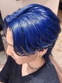 目を引く!ネイビーブルーのブリーチカラー。ブリーチ1回からのネイビーブルーカラーで都会的で色気のある雰囲気に仕上げました。周りと差がつく青髪にしたい方におすすめです!